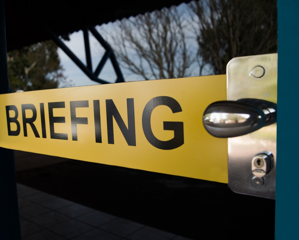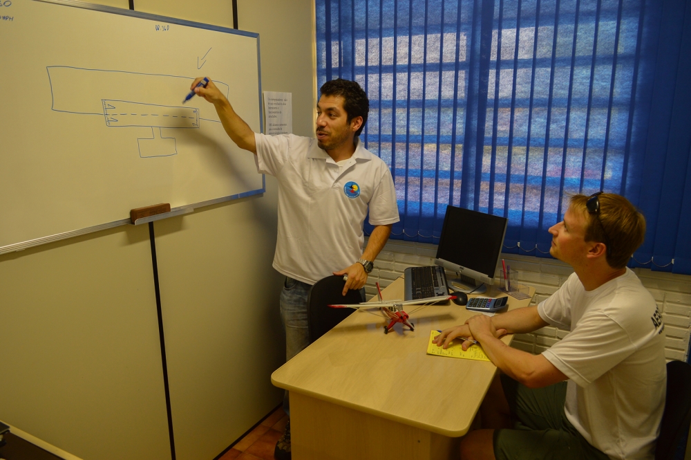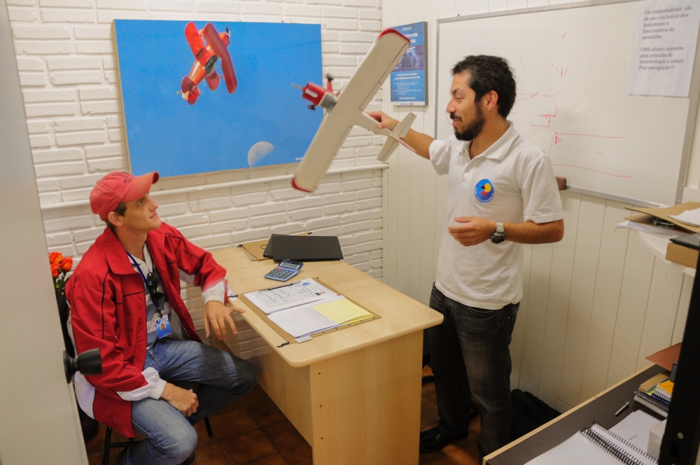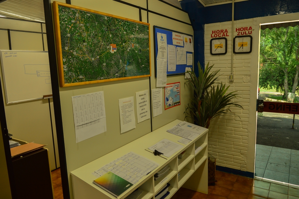 Nas salas de briefing os alunos com os instrutores estudam as próximas aulas práticas e as manobras a serem realizadas. Após o voo, nesta sala, o instrutor e o aluno irão avaliar sobre o mesmo, sobre acertos e erros, onde o instrutor orientará o aluno a usar técnicas mais aprimoradas, para corrigir os erros.